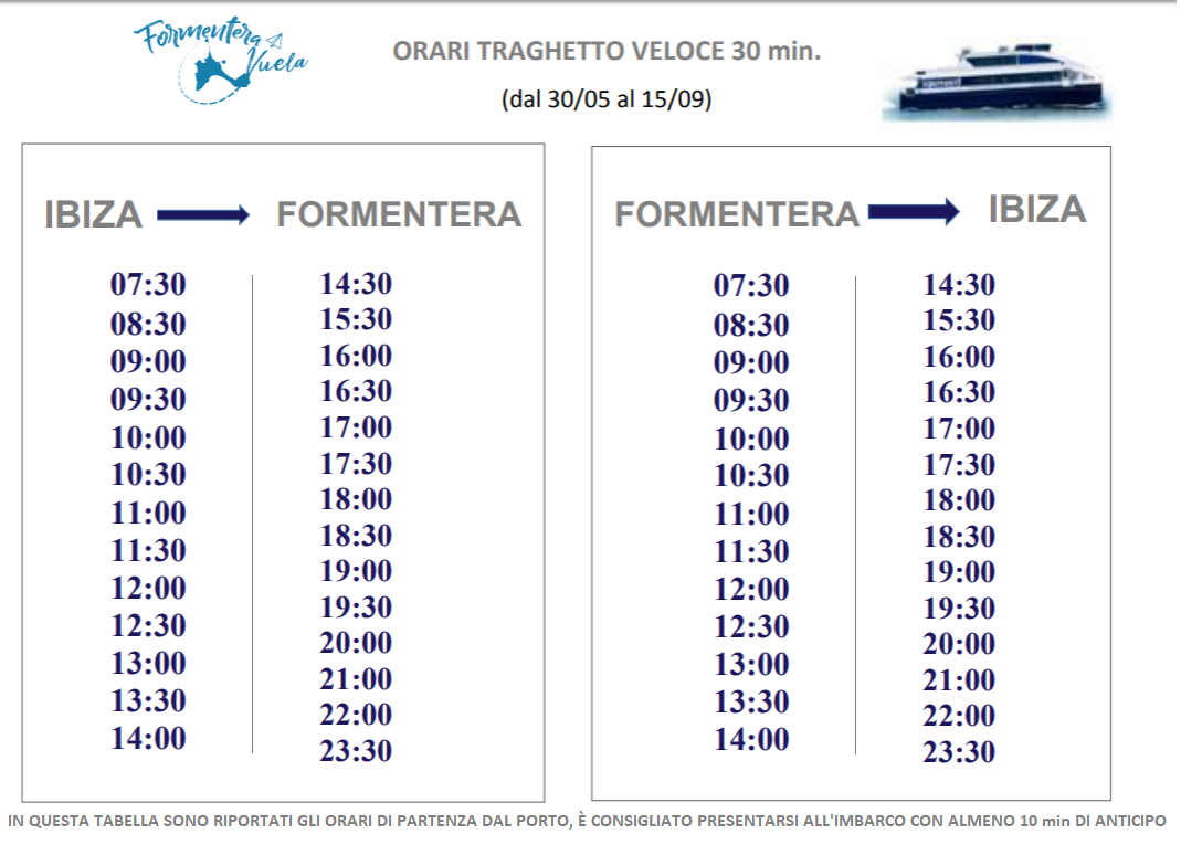 Una volta arrivati a Ibiza ci sarà un nostro incaricato che vi fornirà i biglietti della barca scontati ed eventualmente il trasferimento verso il porto, distante solo 10 minuti.